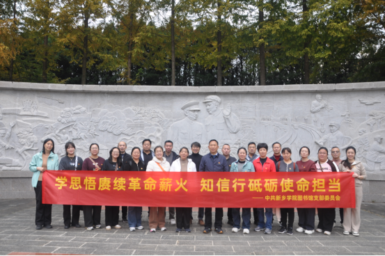 为深入学习贯彻习近平新时代中国特色社会主义思想,加强党员党性教育,10月31日至11月2日,图书馆党支部组织党员赴革命老区新县、确山县开展“学思悟赓续革命薪火 知信行砥砺使命担当” 主题党日活动。通过实地探访、现场教学、重温入党誓词等形式,引导全体党员同志深刻感悟红色历史,汲取奋进力量。